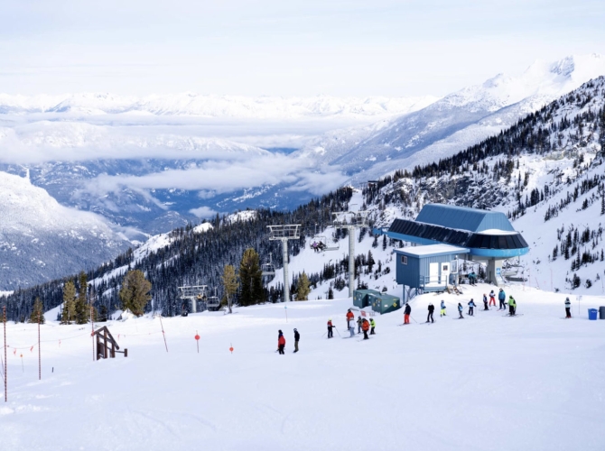 Khu trượt tuyết Whistler Blackcomb (chi phí cáp treo tự túc) – khu du lịch nghỉ dưỡng nổi tiếng và lớn nhất Bắc Mỹ (trong trường hợp cáp treo đóng cửa, hướng dẫn viên sẽ sắp xếp cho quý khách đi tham quan và mua sắm tại các địa điểm khác).