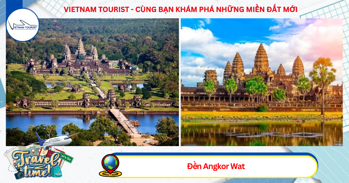 08h00: Qúy khách khởi hành đi tham quan Đền Angkor Wat là ngôi đền có kiến trúc hoành tráng nhất trong toàn bộ quần thể có lối vào chính theo hướng Tây thẳng hướng mặt trời lặn. Đền Angkor Wat có 398 gian phòng, nối liền nhau bởi 1.500m hành lang. Bên trên, 5 toà tháp liên hoàn nhau bằng 3 tầng kiến trúc, trong đó toà tháp cao nhất lên tới 65m, 4 tháp phụ cao 40m. Con đường dẫn tới chính môn của Angkor Wat cũng làm bằng đá tảng dài 230m, rộng gần 10m và có độ cao 5m so với mặt nước hồ ở hai bên đền. Toàn bộ khu đền còn lưu lại dấu vết cổ đại với nhiều hình ảnh nghệ thuật chạm khắc đá như các tấm phù điêu khổng lồ, các cột, cửa, trần, tường, hành lang, lan can, mái…, tất cả toát lên sức mạnh phi thường và bàn tay điêu luyện của người Khmer cổ đại.