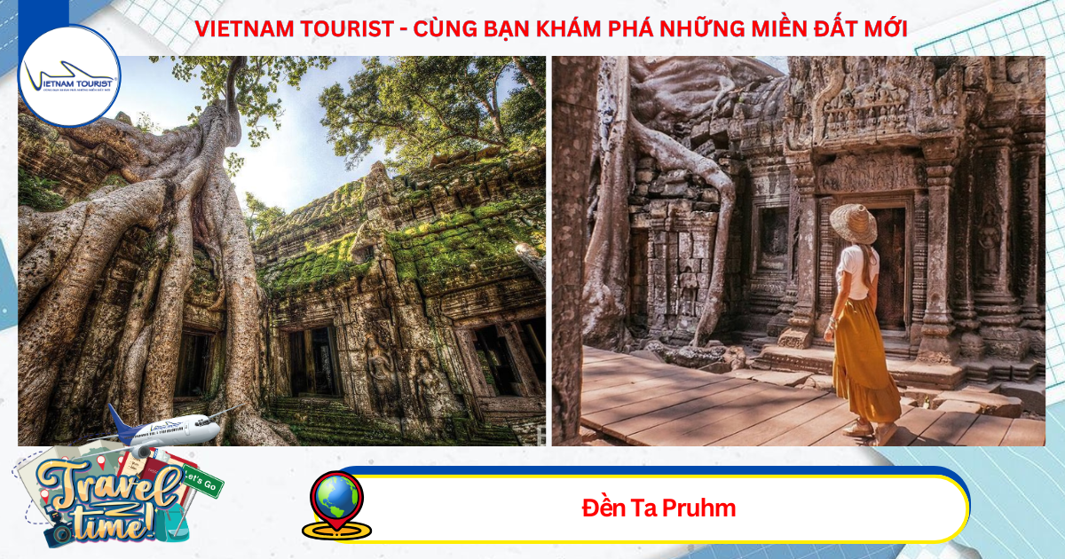 Tiếp theo quý khách đến với Đền Ta Pruhm với những cây đại thụ hình thù kì quái mọc bao phủ cả những ngôi đền lớn, là nơi được Hollywood chọn làm phim trường khởi quay bộ phim Bí Mật Ngôi Mộ Cổ (Tomb Raider).
