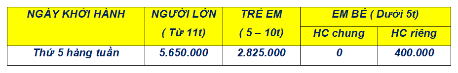 Đủ 11 tuổi trở lên: tính giá tour người lớn, tiêu chuẩn phục vụ như người lớn.