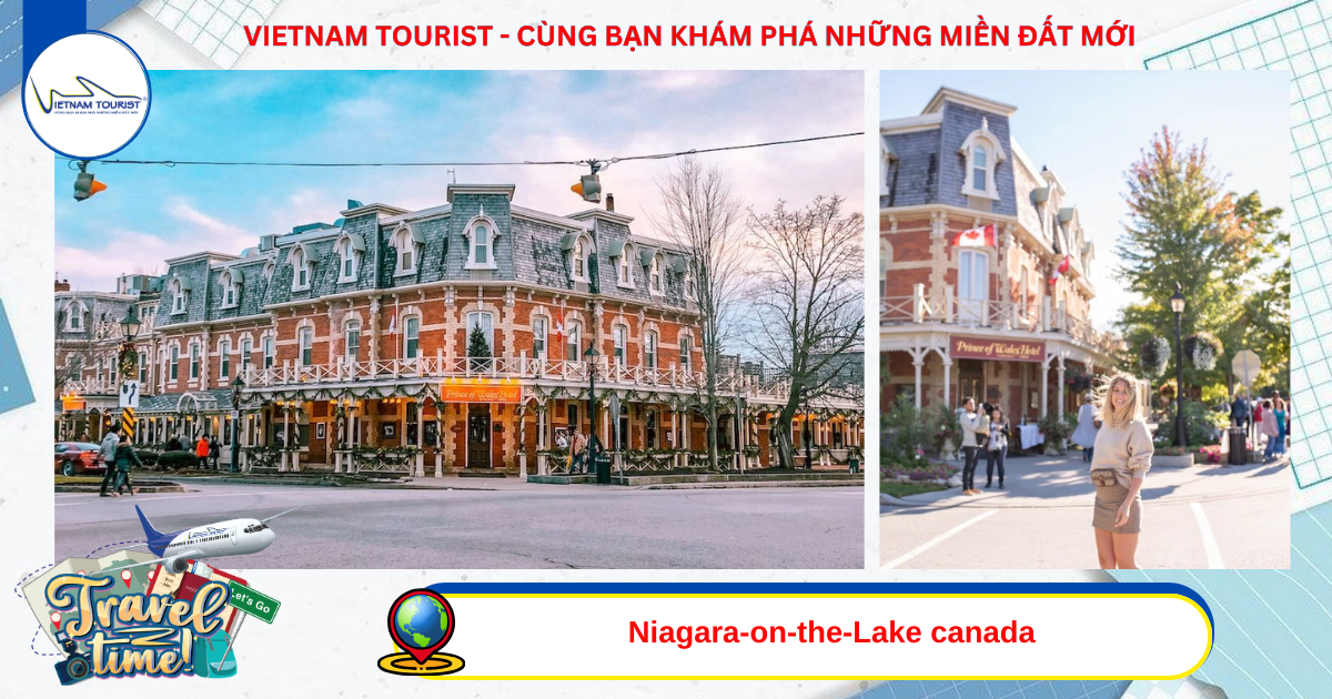 Niagara-on-the-Lake, Ngôi làng cổ kính xinh đẹp nằm dọc theo bờ sông Niagara và Hồ Ontario nổi tiếng với rất nhiều Trang trại trồng nho và sản xuất rượu vang, quý khách có dịp thưởng thức và mua sắm đặc sản rượu vang tuyết đặc trưng của vùng.