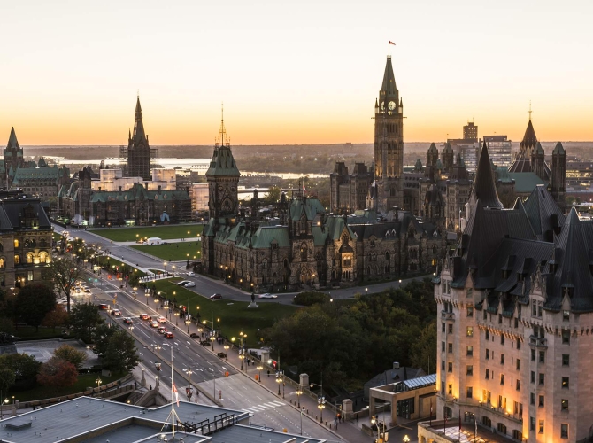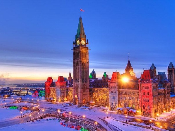 Parliament Hill - Trụ sở quốc hội Canada (chụp ảnh bên ngoài) – được xem là một trong những tòa nhà chính phủ đẹp nổi tiếng trên thế giới với lối kiến trúc bằng đá và điêu khắc tinh xảo