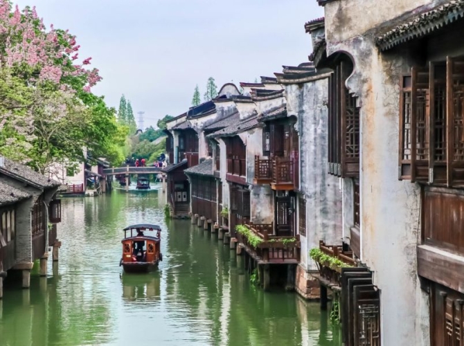 Ô Trấn (Phía Đông) – Là một trấn cổ sông nước lớn nhất Trung Quốc với hơn 1300 năm lịch sử thể hiện qua cây cầu đá cổ, con đường lát đá và công trình gỗ chạm khắc tinh tế. Gần như vẫn giữ được kiến trúc cùng tập tục sinh sống nên Ô Trấn trở thành điểm du lịch mà ai cũng muốn đến một lần.