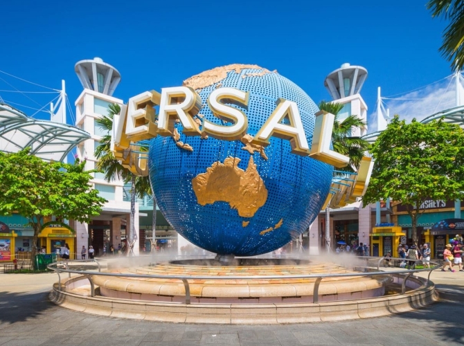 Chụp hình với quả địa cầu Universal Studios