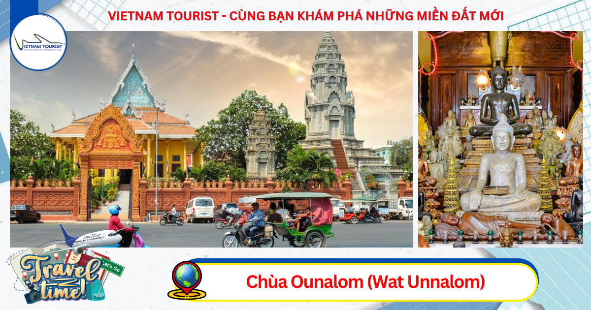 08h00: Qúy khách đến Viếng Chùa Ounalom (Wat Unnalom) nằm bên bờ sông Tonle Sap, cũng là điểm tham quan nổi tiếng khác của "xứ sở chùa Tháp". Chùa thu hút nhiều khách tham quan bởi kiến trúc có nét riêng khá độc đáo. Quần thể chùa bao gồm 44 khu nhà. Địa danh này từng có hơn 500 tu sĩ Phật giáo đến học tập và lưu giữ khoảng 30.000 quyển sách kinh. Tuy nhiên, khi chế độ Khmer Đỏ chiếm đóng Phnom Penh vào năm 1974, chúng đã ra tay phá hủy nhiều phần trong chùa Ounalom và có rất nhiều sách bị mất đi. Sau khi chiến tranh kết thúc thì Wat Ounalom đã được tu sửa rất khang trang.Chùa Ounalom sẽ luôn là điểm dừng chân giá trị để du khách cầu bình an, sức khỏe cho gia đình, người thân
