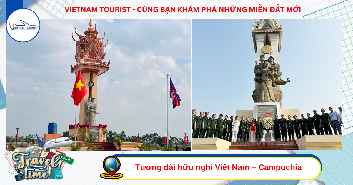 11h00: Chụp hình lưu niệm tại Tượng đài hữu nghị Việt Nam – Campuchia: Là công trình tượng đài bằng bê tông, được xây dựng cuối những năm 1970 tại thủ đô Phnôm Pênh, gần Vương cung Campuchia để kỷ niệm liên minh Việt Nam-Campuchia, sau khi Quân đội nhân dân Việt Nam tiến vào Campuchia lật đổ chế độ diệt chủng Khmer Đỏ