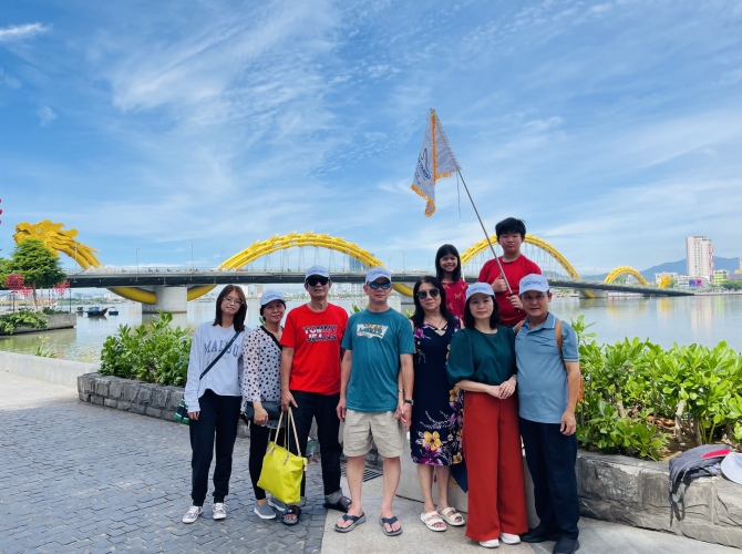 09h00: Xe đưa quý khách vòng qua Cầu Rồng lưu lại dấu ấn trên Cầu Tình Yêu, tản bộ thưởng thức không khí trong lành bên bờ Hàn Giang với tượng Cá Chép Hóa Long – Biểu tượng mong muốn vươn lên của người Đà Nẵng.
