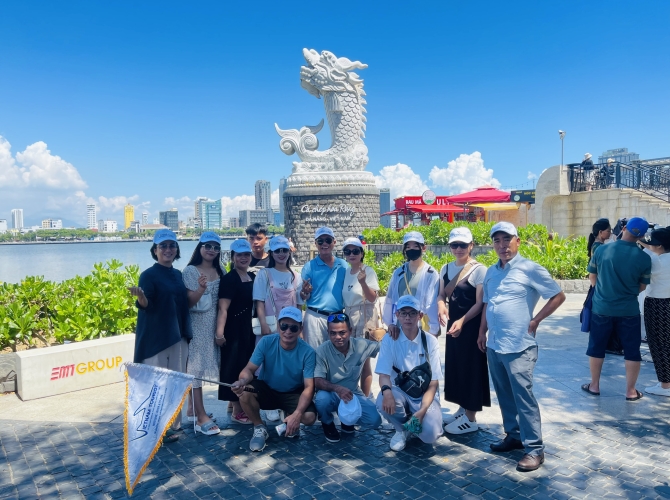 08h30: Xe đưa quý khách vòng qua Cầu Rồng lưu lại dấu ấn trên Cầu Tình Yêu, tản bộ thưởng thức không khí trong lành bên bờ Hàn Giang với tượng Cá Chép Hóa Long – Biểu tượng mong muốn vươn lên của người Đà Nẵng.