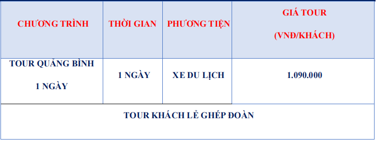 Lịch trình chi tiết tour TOUR ĐỘNG PHONG NHA – VŨNG CHÙA – BIỂN ĐÁ NHẢY 1 NGÀY