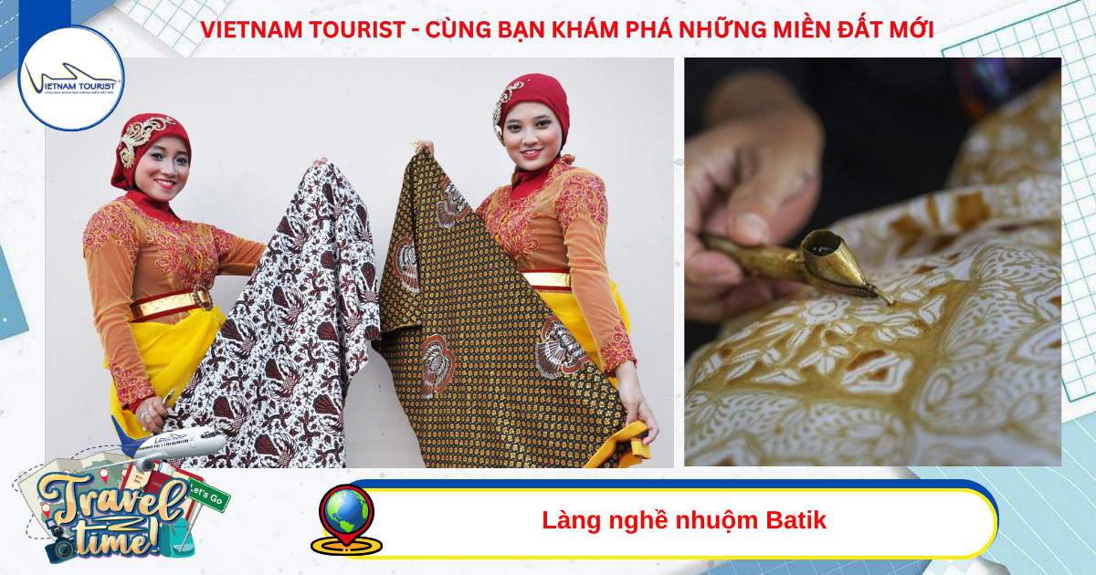 Làng nghề nhuộm Batik - phương pháp nhuộm phổ biến ở Indonesia, bằng cách sử dụng sáp nóng chảy vẽ trên mặt vải. Theo nghiên cứu của các chuyên gia, nghề nhuộm vải Batik đã có cách đây 1.500 năm với các mẫu vật khảo cổ từng được tìm thấy ở Ai Cập, Trung Đông, Thổ Nhĩ Kỳ, Ấn Độ, Nhật Bản và Tây Phi. Nhưng chỉ ở Indonesia, nghề nhuộm vải này mới được phát triển thành nghệ thuật trang trí thủ công. Năm 2009, UNESCO đưa nghệ thuật dệt Batik vào danh sách đại diện di sản văn hóa phi vật thể của nhân loại.