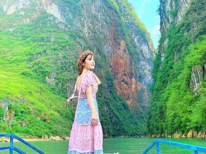 08h30: Qúy khách tiếp tục hành trình đến với sông Nho Quế nằm ở độ cao hơn 1.500 m, bắt nguồn từ vùng núi Nghiễm Sơn (Trung Quốc) và chảy theo hướng Tây Bắc. Tổng chiều dài con sông là 192 km, có 46 km ở Việt Nam. Phần đầu sông chảy từ thôn Séo Lủng thuộc xã Lũng Cú đi qua Hẻm Tu Sản - được coi là vực sâu nhất Đông Nam Á. Đây cũng được đánh giá là đoạn sông có cảnh đẹp chinh phục nhiều du khách đến tham quan trải nghiệm tại Hà Giang.