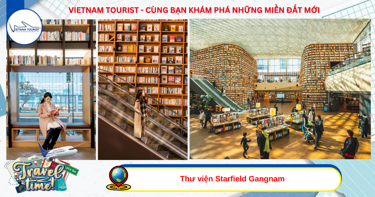 Thư viện Starfield Gangnam – là một biểu tượng văn hóa, một điểm đến không thể bỏ qua khi ghé thăm Seoul, Hàn Quốc. Với các kệ sách cao 13 mét, là một không gian công cộng mở cửa đón chào bất kỳ ai đến thư viện để ngồi, thư giãn, nghỉ ngơi và đắm chìm trong hàng ngàn cuốn sách đa dạng. Ánh sáng tự nhiên tràn vào từ cửa sổ mái khiến thư viện trông càng hoành tráng hơn ngoài đời thực