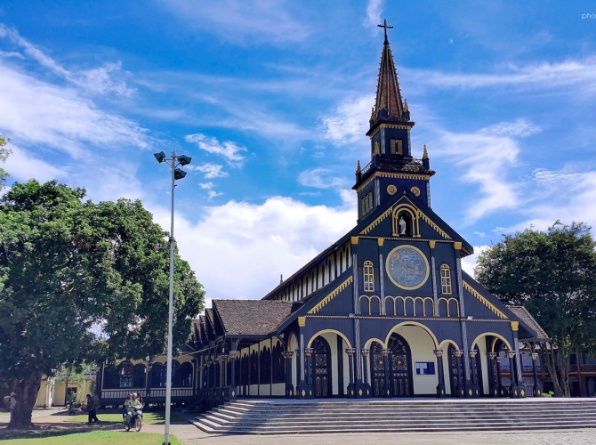 - Tham quan Nhà thờ chánh tòa Kon Tum, hay còn gọi là nhà thờ gỗ Kon Tum đẹp nhất Tây Nguyên