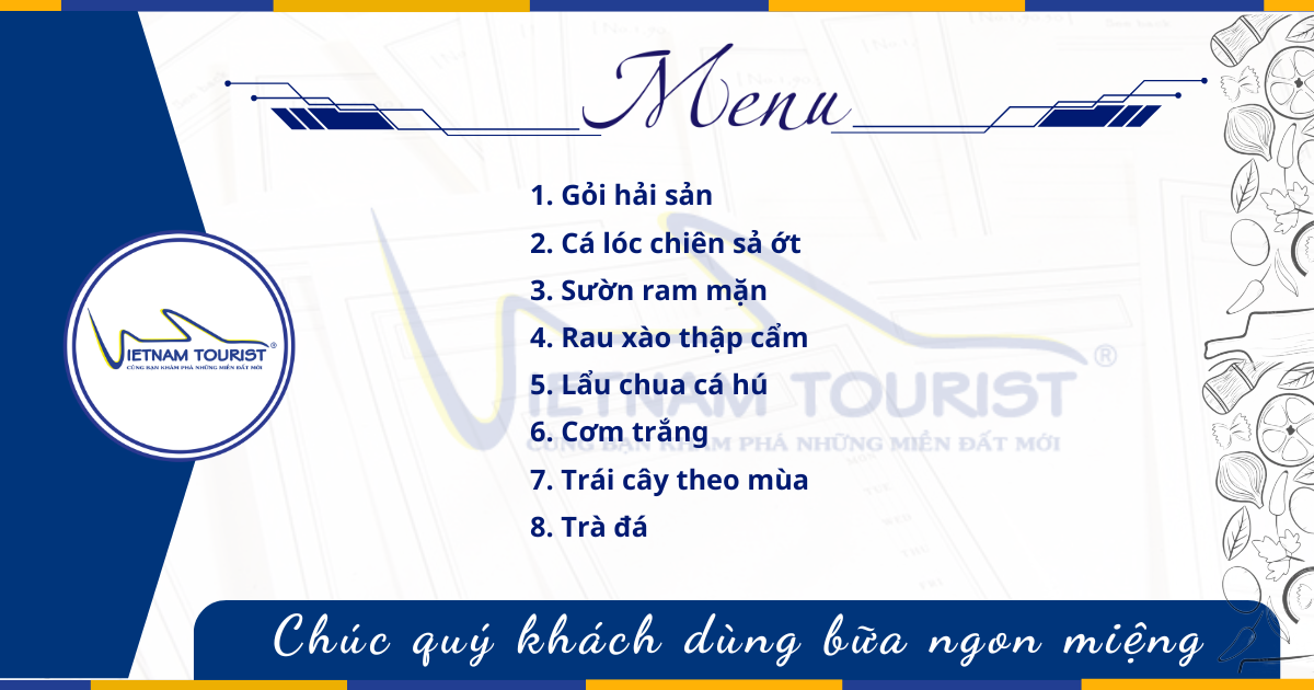 Ăn chính: 1 bữa ăn chính set menu (150.000vnđ/xuất)