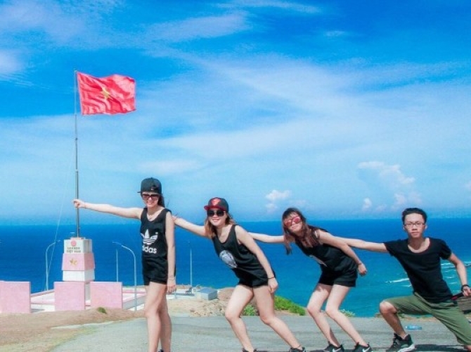 Qúy khách check in cột cờ Lý Sơn với chiều cao 20m, có hướng quay mặt ra quần đảo Hoàng Sa. Cột cờ Lý Sơn là biểu tượng đánh dấu chủ quyền biển đảo của người dân nơi đây. Điểm đặc biệt của kiến trúc cột cờ đảo Lý Sơn chính là kỹ thuật kết cấu móng và 4 bức phù điêu hình ngọn lửa. Tạo nên sự vững chắc cho cột cờ và cũng là biểu tượng cho tinh thần yêu nước cháy bỏng, sự chung sức và đồng lòng của sinh viên cả nước xây dựng nên công trình này.