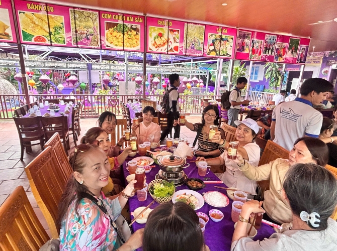 16h30: Xe khởi hành về lại TP.HCM. Trên đường về, đoàn dừng chân mua sắm đặc sản miền Tây như kẹo dừa, bánh phồng, trái cây miệt vườn.