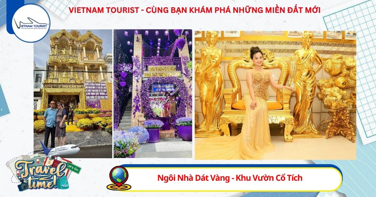 14h00: Quý khách ghé tham quan NGÔI NHÀ DÁT VÀNG – KHU VƯỜN CỔ TÍCH – Căn nhà được xây dựng toàn màu vàng, nội thất ngôi nhà thể hiện gu thẩm mỹ cao và đầu tư trí óc của chủ nhân. Khi tham quan du khách vô cùng thích thú với những bức ảnh trong trang phục cung điện trang nghiêm. Du khách được trải nghiệm sự sang trọng, uy nga và lộng lẫy của ngôi nhà. (chi phí tự túc)