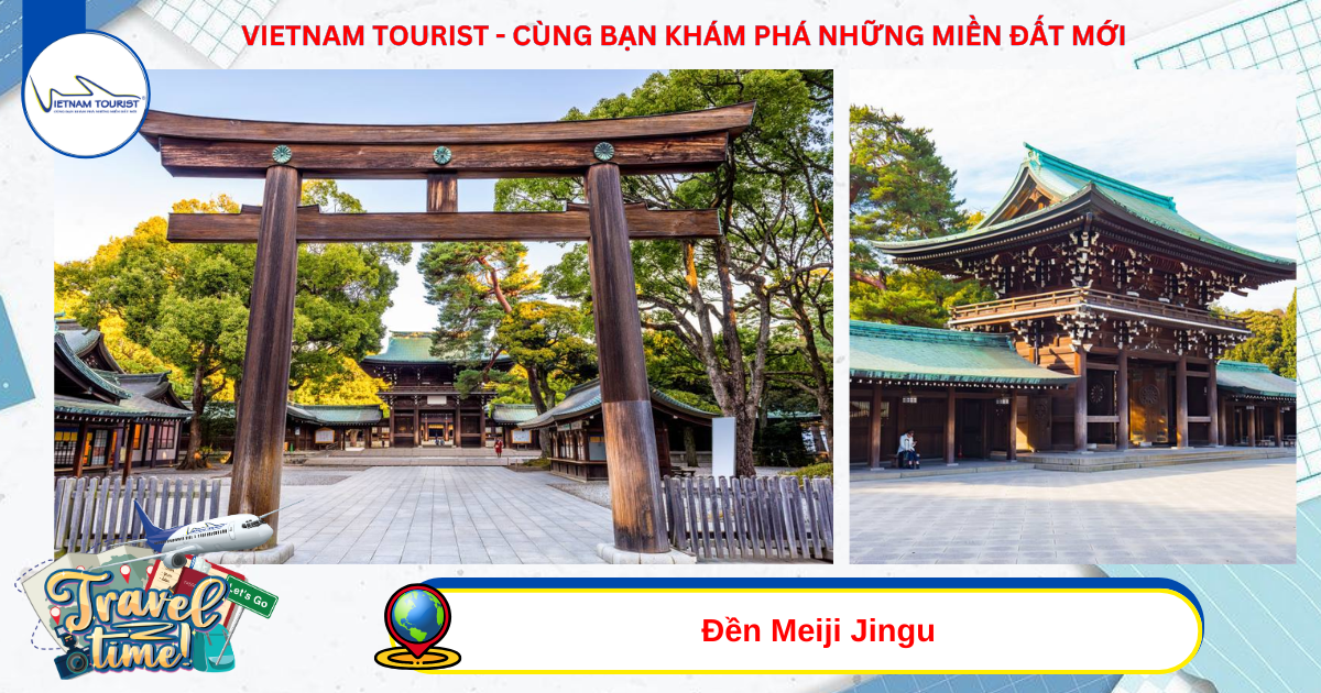 Đền Meiji Jingu – ngôi đền linh thiêng giữa khu rừng cổ thụ ngay trung tâm Tokyo. Cổng torii bằng gỗ bách cao sừng sững tạo ấn tượng mạnh, đặc biệt khi lối vào được phủ bởi những tán cây xanh và sắc hoa mùa xuân. Du khách có thể viết ema (miếng gỗ cầu nguyện) đầu xuân, đi bộ dưới những tán cây, cảm nhận vẻ đẹp hài hòa giữa thiên nhiên và kiến trúc truyền thống Nhật Bản, đặc biệt quý khách có thể được chiêm ngưỡng lễ nghi Shinto diễn ra tại đây.