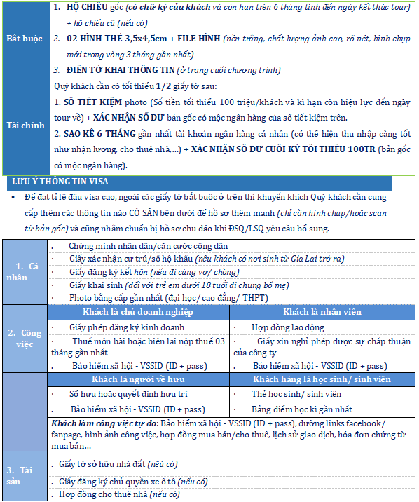 Để tạo điều kiện cho việc xét duyệt visa được nhanh chóng, Quý khách vui lòng chuẩn bị & hoàn tất hồ sơ theo hướng dẫn sau đây: