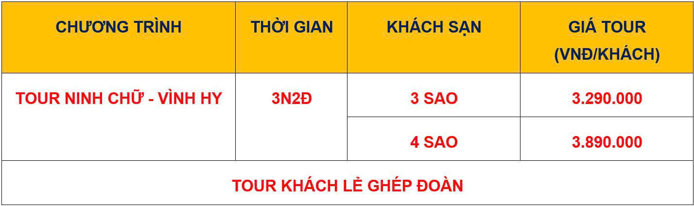 TOUR NINH CHỮ - VĨNH HY 3N2Đ