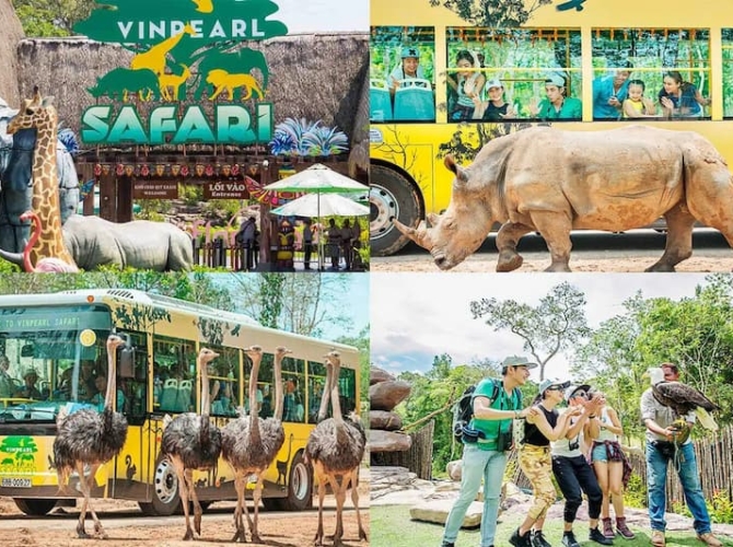 08h00: Xe vinpearl và hướng dẫn viên đưa quý khách đến Vinpearl Safari là mô hình công viên chăm sóc - bảo tồn động vật bán hoang dã đầu tiên và lớn nhất tại Việt Nam được xây dựng theo chuẩn safari thế giới. Vinpearl Safari với diện tích lên đến 380ha, nơi đang bảo tồn 4500 cá thể, 1200 loài thực vật và 200 loài động vật: