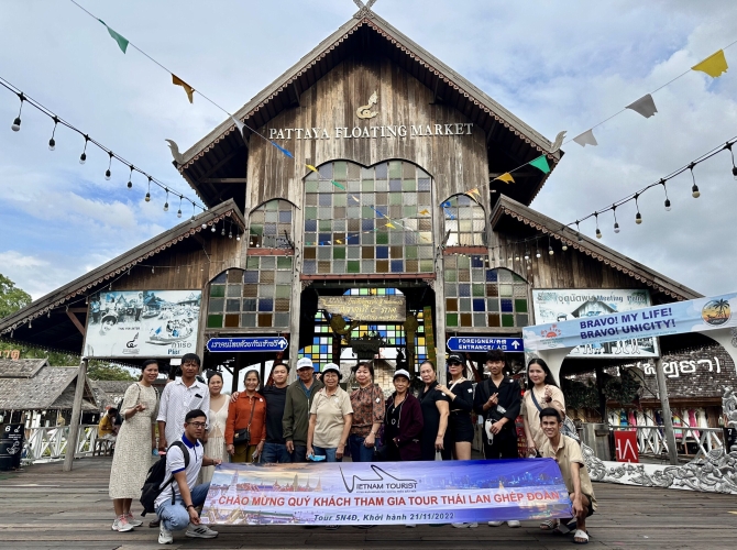 07h00: Xe và Hướng dẫn viên Vietnam Tourist đón quý khách tại điểm hẹn đưa đoàn đến nhà ga T2 Sân bay Nội Bài – Hà Nội. Sau đó, đoàn bay đi Thái Lan chuyến 11h30. Khoảng 14h30 Đoàn đến Thái Lan