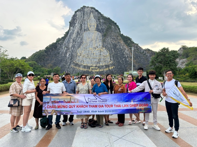 16h30: Qúy khách tiếp tục viếng thăm Núi Phật Vàng (Khao Chee Chan) - nổi tiếng với hình đức Phật khắc vàng trên lưng núi. Mẫu tượng Phật Thích ca dát vàng cao 118 m được khắc lên núi Khao Chee Chan được tạo theo phong cách Sukhothai, được người thái ưa chuộng trên toàn quốc. Tượng Phật cao 130 mét, chiều rộng 70 mét, được xây dựng vào năm 1996, tổng chí phí xây dựng 161,7 triệu Baht được sự chăm sóc và bảo quản của quân đội hoàng gia Thái Lan.