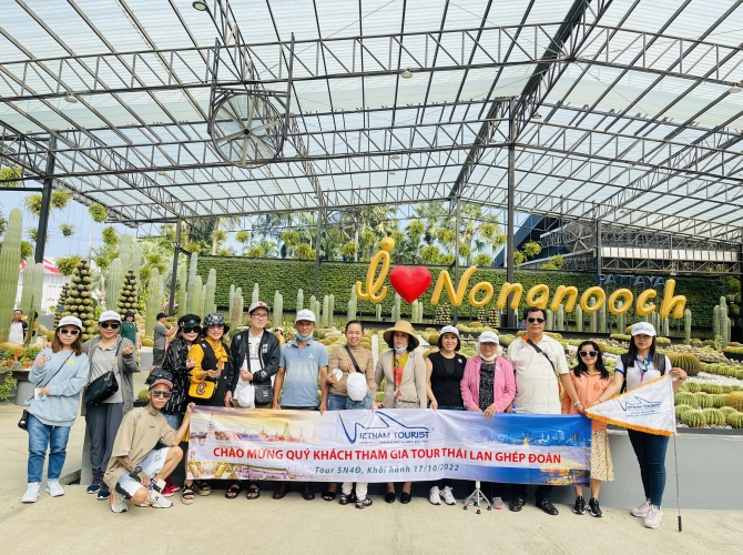 15h00: Xe đưa quý khách đến Vườn nhiệt đới Nong Nooch - là một điểm du lịch hấp dẫn du khách với những cảnh quan tự nhiên vô cùng xinh đẹp được kết hợp tinh tế với bàn tay tạo hóa của con người để cho ra đời những sản phẩm độc đáo như Gốm sứ, tượng đá,...tạo nên một không gian vô cùng sống động. Sau đó, qúy khách tiếp tục tham quan “Công viên khủng long Nongnooch” - NongNooch Dinosaur Valley Pattaya. Tại đây Quý khách có dịp xem show biểu diễn của các chú Voi vui nhộn. (Trường hợp không trùng giờ show sẽ bù qua cho Quý khách ngồi xe điện dạo Công viên) Tham quan khuôn viên công viên khủng long, Vườn lan, Xương rồng v.v…. cảnh đẹp như lạc vào thế giới rừng xanh.
