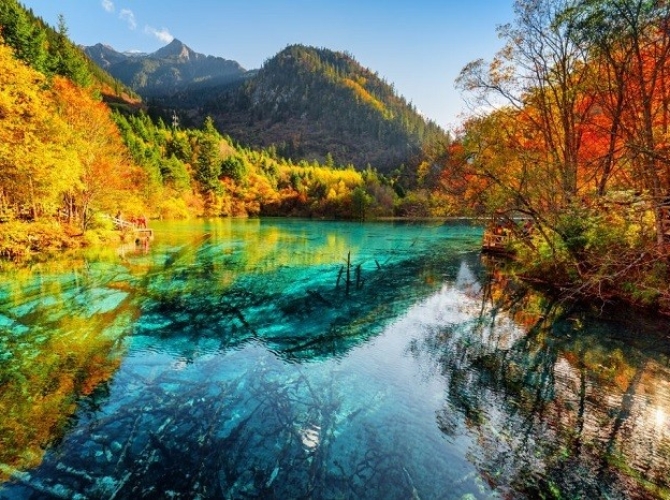 Quý khách dùng bữa sáng tại khách sạn, sau đó xe đưa đoàn bắt đầu chương trình tham quan khu phong cảnh Thiên đường Cửu Trại Câu – ‘’Thiên đường hạ giới thứ 2” (bao gồm xe du lịch sinh thái công cộng)