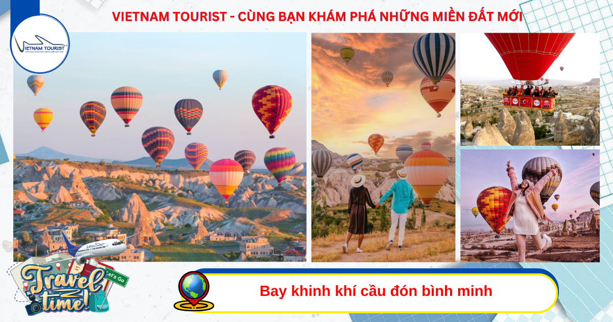 04h30 sáng: Quý khách có thể tự thưởng cho mình những trải nghiệm đặc biệt để khám phá trọn vẹn vẻ đẹp kỳ ảo của Cappadocia – vùng đất được ví như hành tinh khác giữa lòng Thổ Nhĩ Kỳ: (Chi phí tự túc, quý khách đăng ký trực tiếp với Hướng dẫn viên. Tùy vào điều kiện thời tiết, hoạt động có thể hủy hoặc thay đổi tùy vào thời tiết.)
