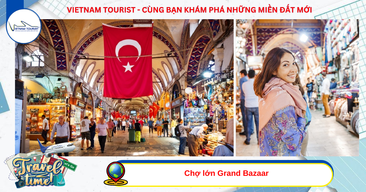Chợ lớn Grand Bazaar nổi tiếng với trên 4.000 cửa hàng bán các đồ thủ công mỹ nghệ đặc sắc như thảm, đồ trang sức, đồ thời trang bằng da, hàng tơ lụa -Ngôi chợ 500 năm tuổi nổi tiếng với hơn 4000 gian hàng và đồ lưu niệm khác nhau, du khách có thể tự do mua sắm những gì mình yêu thích