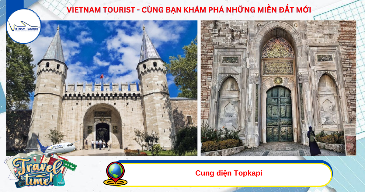 Cung điện Topkapi: Đây là nơi các vị vua Ottoman ở trong gần 4 thế kỉ, giờ đây cung điện này trở thành điểm thăm quan công cộng và là nơi lưu giữ các thánh tích linh thiêng. (chụp ảnh bên ngoài)