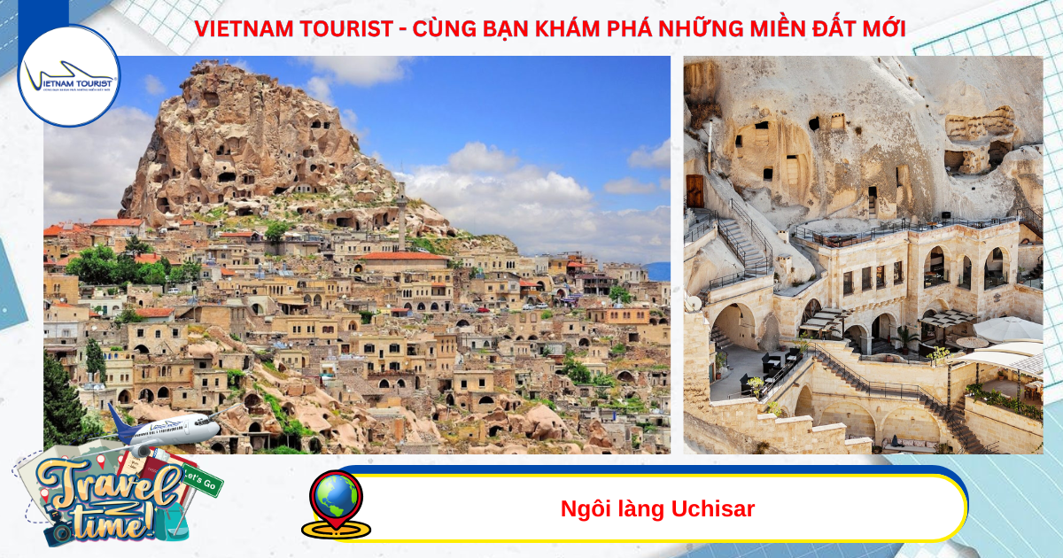 Ngắm nhìn Ngôi làng Uchisar, nằm trên đỉnh cao nhất của Cappadocia và đỉnh cao trong kiến trúc xây dựng của họ là lâu đài Uchisar với mê cung các phòng, lối đi và cầu thang.