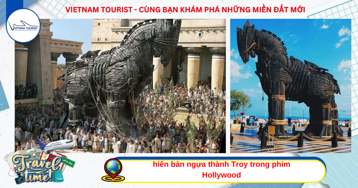 Buổi trưa: Quý khách dùng bữa trưa tại nhà hàng, sau đó bắt đầu hành trình khám phá hai phiên bản nổi tiếng của “ngựa thành Troy” – một mang giá trị lịch sử vĩnh cửu, một gắn liền với dấu ấn điện ảnh Hollywood.