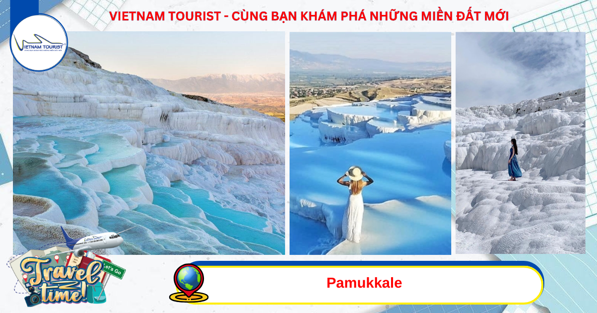 Tiếp tục đến với Pamukkale (~400km, ~5 giờ di chuyển) – Đây là một điểm đến hấp dẫn nhất nhì Thổ Nhĩ Kỳ bởi vẻ đẹp khó tin chỉ xuất hiện trong những bộ phim khoa học viễn tưởng của nó. Nếu chỉ nhìn trên ảnh hay những thước phim từ trên cao, người ta dễ nhầm lẫn đây là một núi tuyết khổng lồ nhưng thật ra đó chính là một vùng núi đá vô canxi cacbonic được tích tụ hàng nghìn năm với hình dáng như những hồ nước xếp thành từng tầng được tạo thành bởi quá trình biến đổi. Nước trong những “hồ bông” này là nước khoáng tự nhiên được hình thành từ mạch khoáng ngầm với màu xanh da trời và chứa nhiều khoáng chất có lợi cho sức khỏe và có thể hỗ trợ chữa bệnh. Ở Pamukkale có đến 17 suối nước nóng với nhiệt độ từ 35 – 100 độ nên từ lâu người ta đã biết tận dụng để mở các dịch vụ spa, nghỉ dưỡng để phục vụ du khách.