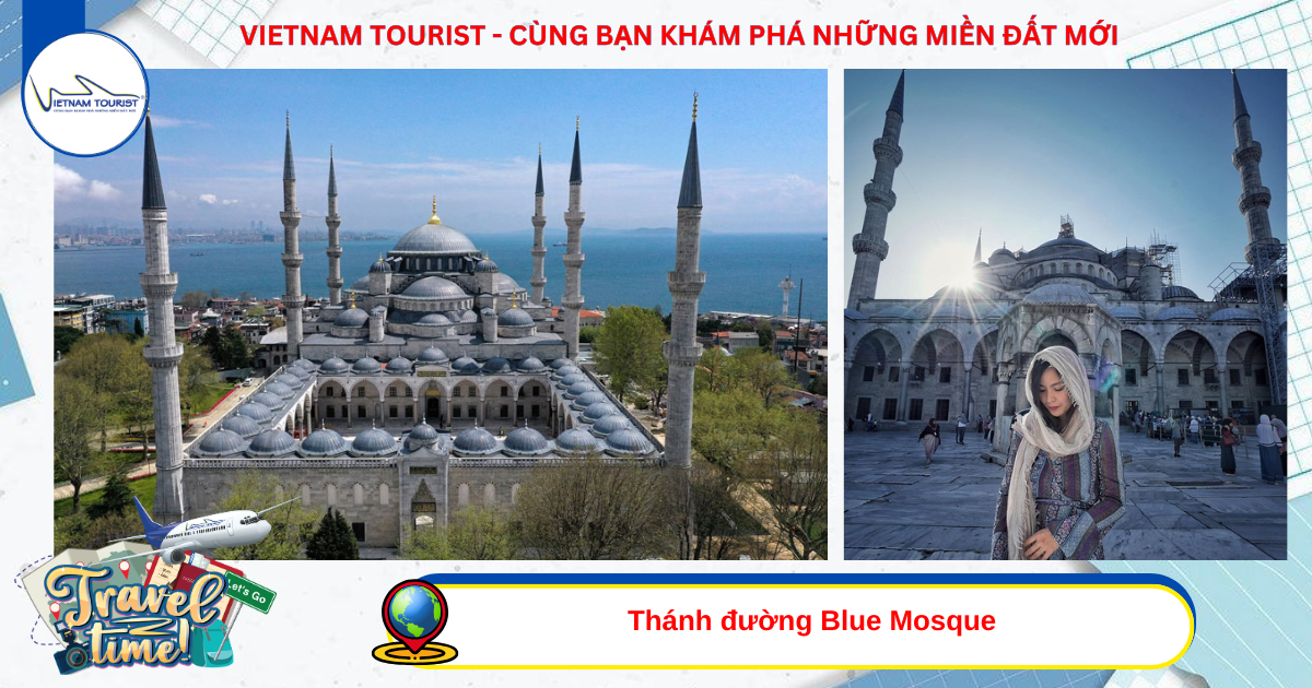 Thánh đường Blue Mosque: Công trình này có màu sắc rực rỡ của nội thất lát gạch, là một trong những nét nổi bật nhất trên đường chân trời Istanbul.