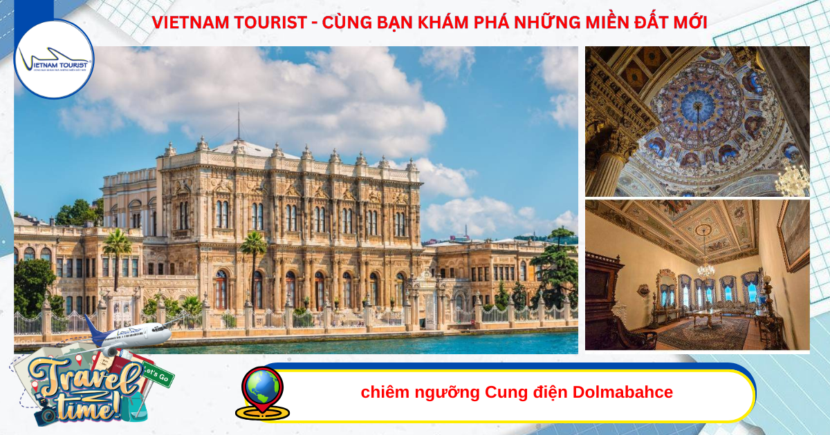 Khi du ngoạn trên tàu quý khách sẽ được chiêm ngưỡng Cung điện Dolmabahce - Cung điện lớn thứ 2 ở Istanbul sau cung điện Topkapi với toàn bộ trần của cung điện nước khổng lồ này được chống đỡ bởi 36 cột đá tạo nên những mái vòm đẹp mắt, các kiến trúc đặc trưng và các hoạt động thường ngày của cư dân địa phương.