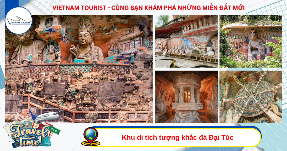 Sau bữa trưa, đoàn tham quan Khu di tích tượng khắc đá Đại Túc (bao gồm xe điện): Nơi đây bao gồm nhiều tác phẩm nghệ thuật điêu khắc về tôn giáo Trung Hoa (Phật Giáo, Nho Giáo và Đạo Giáo), chứa khoảng 50.000 bức tượng với hơn 100.000 nhân vật Trung Quốc. Hệ thống các tượng đá này chính là kho tàng nghệ thuật của người dân Trung quốc, là Di sản văn hóa Thế giới. Một trong những tác phẩm ấn tượng và đặc sắc nhất phải kể đến đó là bức tượng Phật Quan âm với nghìn tay. Bức tượng này được mệnh danh là Thiên hạ kỳ quan. Đến đây, quý khách thỏa thích chiêm ngưỡng các pho tượng Phật khổng lồ và độc đáo nhất của nền nghệ thuật điêu khắc Trung Hoa. Qua đó, quý khách sẽ có thêm cái nhìn sâu sắc hơn về những nét đẹp trong văn hóa tín ngưỡng của nhiều tôn giáo lâu đời.