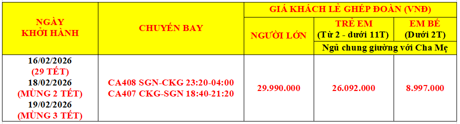 TP.HCM - TRÙNG KHÁNH (Ăn trên máy bay)